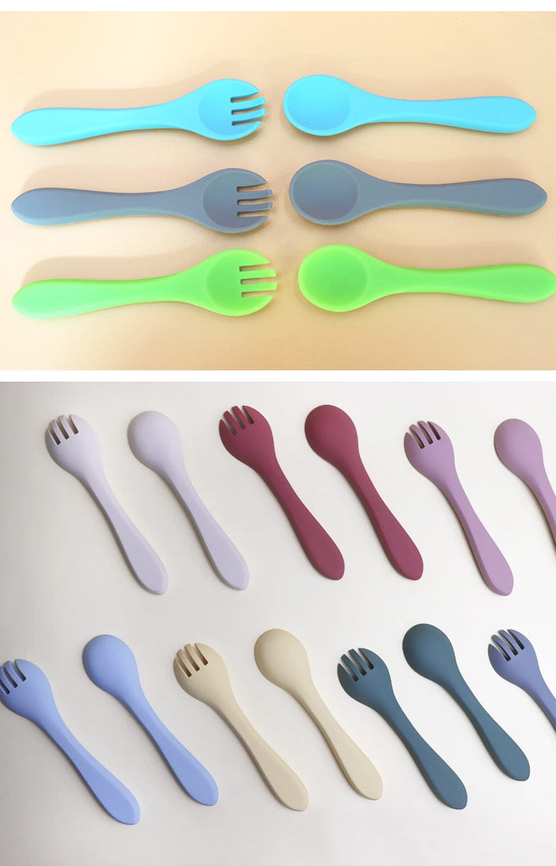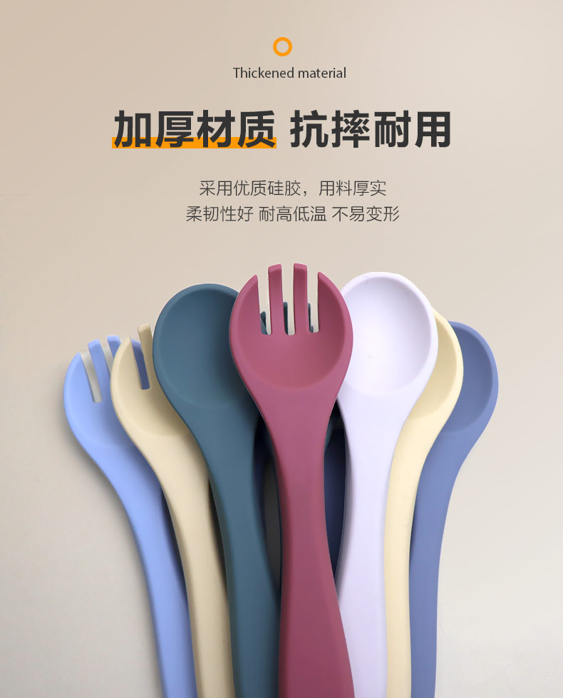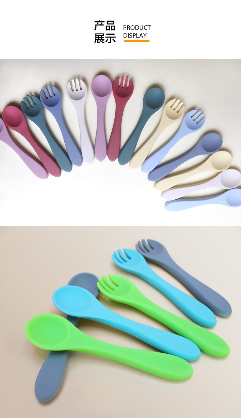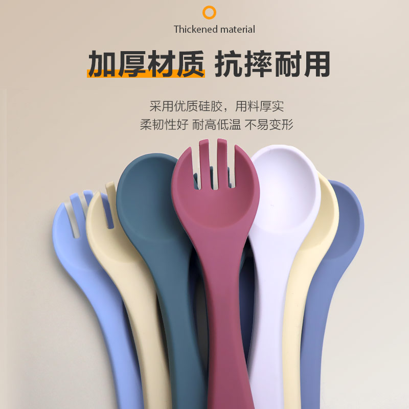 您的位置:首頁 > 產品中心 > 硅膠嬰童用品 > 硅膠叉勺嬰兒訓練叉勺食品級硅膠叉勺