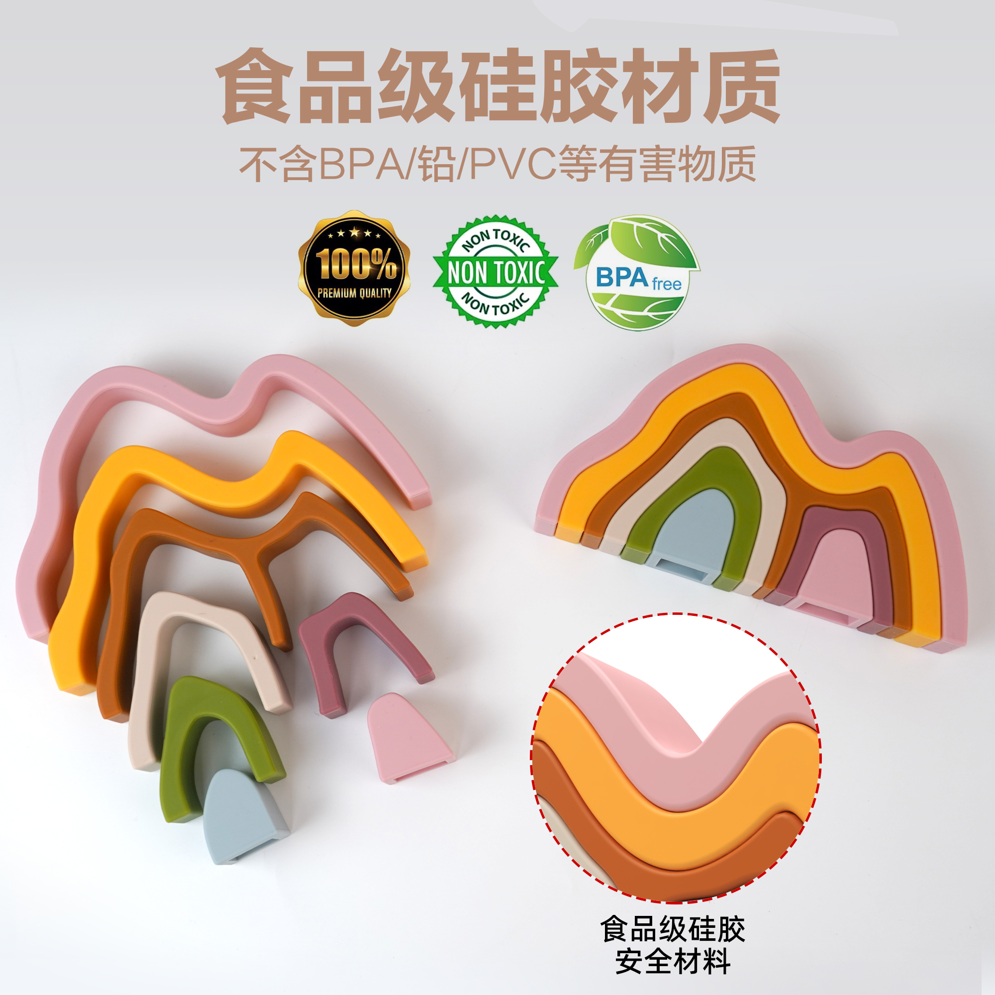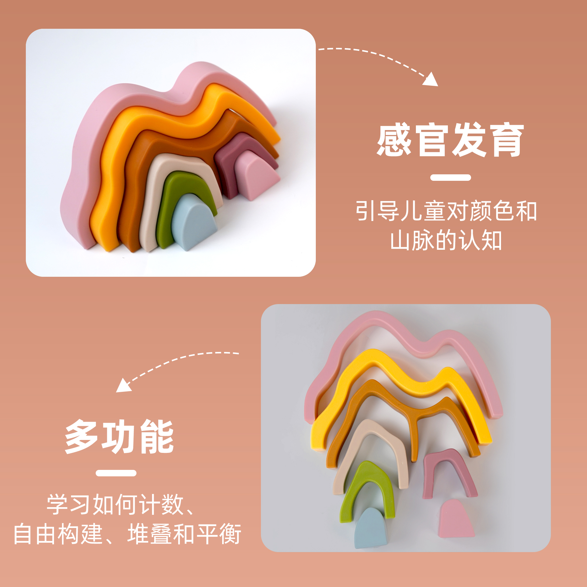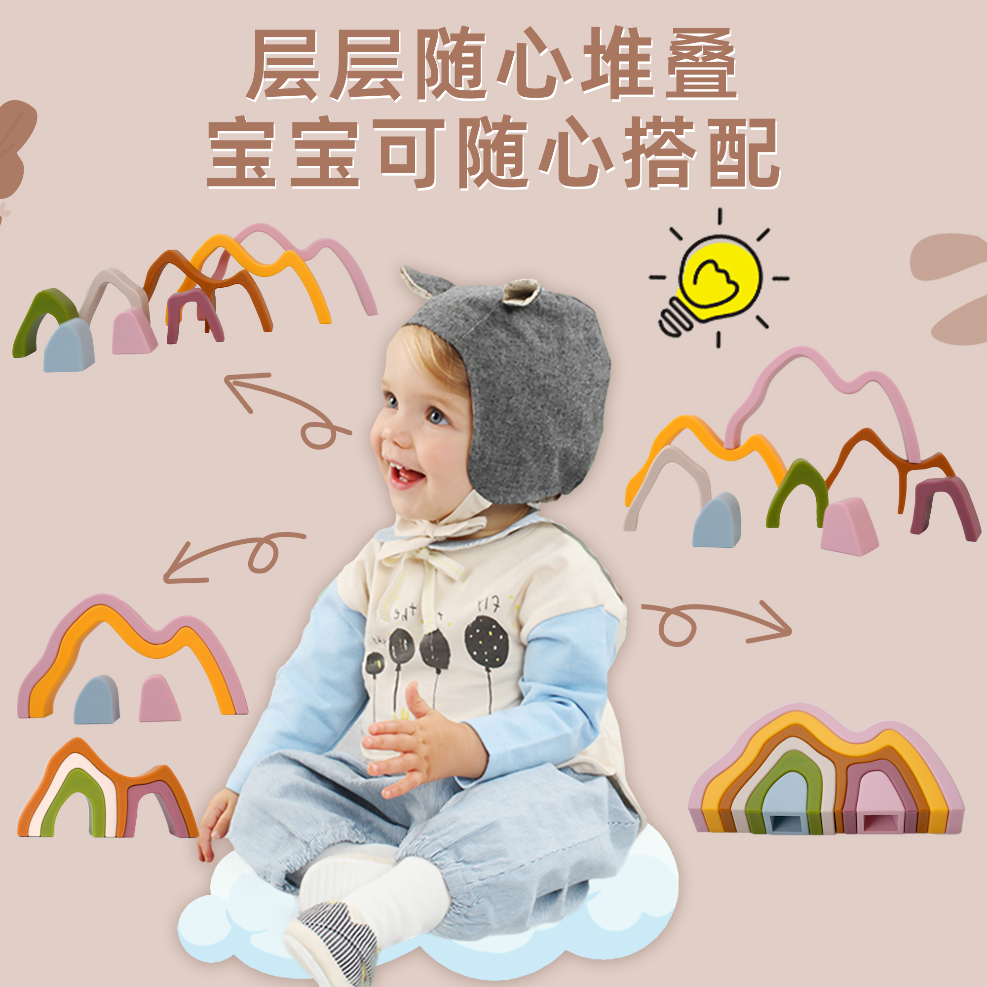 硅膠疊疊樂(lè)積木山玩具可啃早教大腦開發(fā)益智玩具