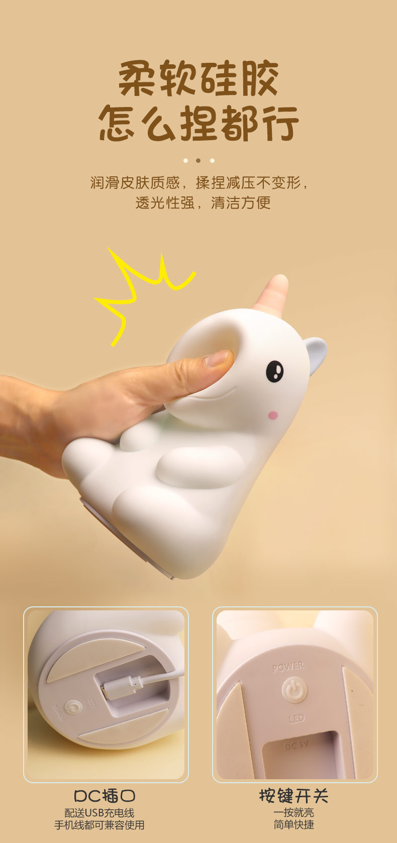 您的位置:首頁 > 產(chǎn)品中心 > 硅膠家居用品 > 拍拍燈 > 獨角獸小夜燈起夜嬰兒喂奶照明小臺燈臥室燈創(chuàng)意燈