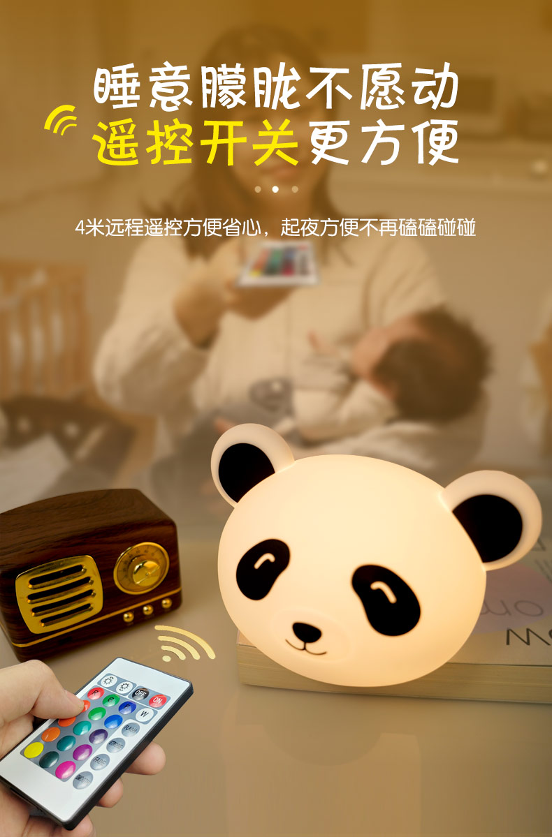熊貓拍拍燈 創(chuàng)意夜燈硅膠卡通發(fā)光玩具充電拍拍燈 可加印LOGO批發(fā)