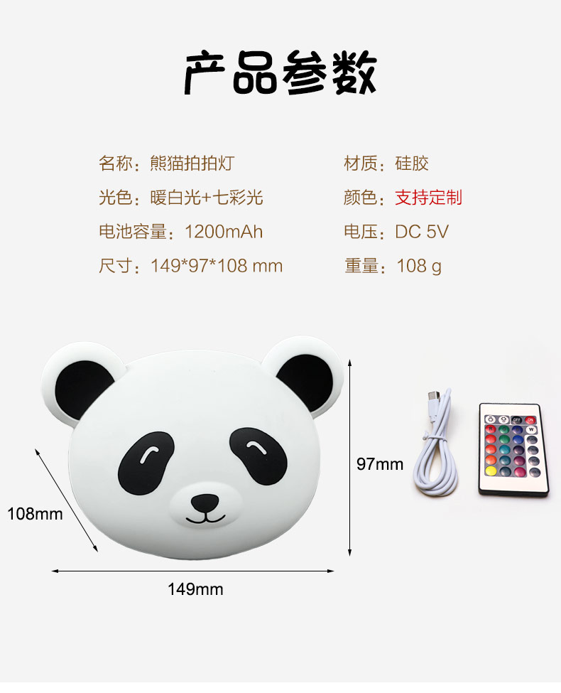 您的位置:首頁(yè) > 產(chǎn)品中心 > 硅膠家居用品 > 拍拍燈 > 熊貓拍拍燈 創(chuàng)意夜燈硅膠卡通發(fā)光玩具充電拍拍燈 可加印LOGO批發(fā)