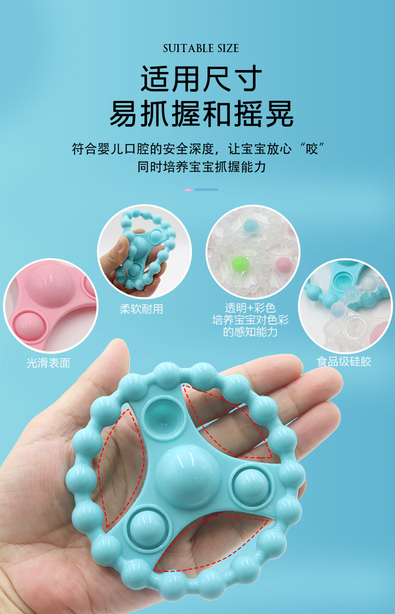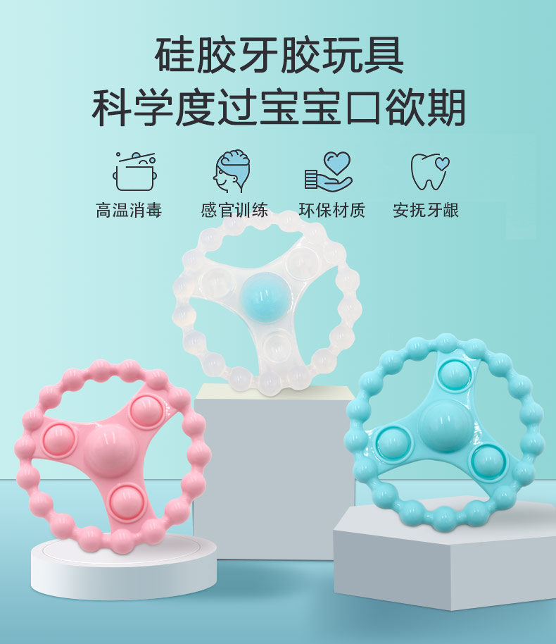 簡介:純凈硅膠磨牙玩具,采用食品級液態(tài)硅膠不含BPA,